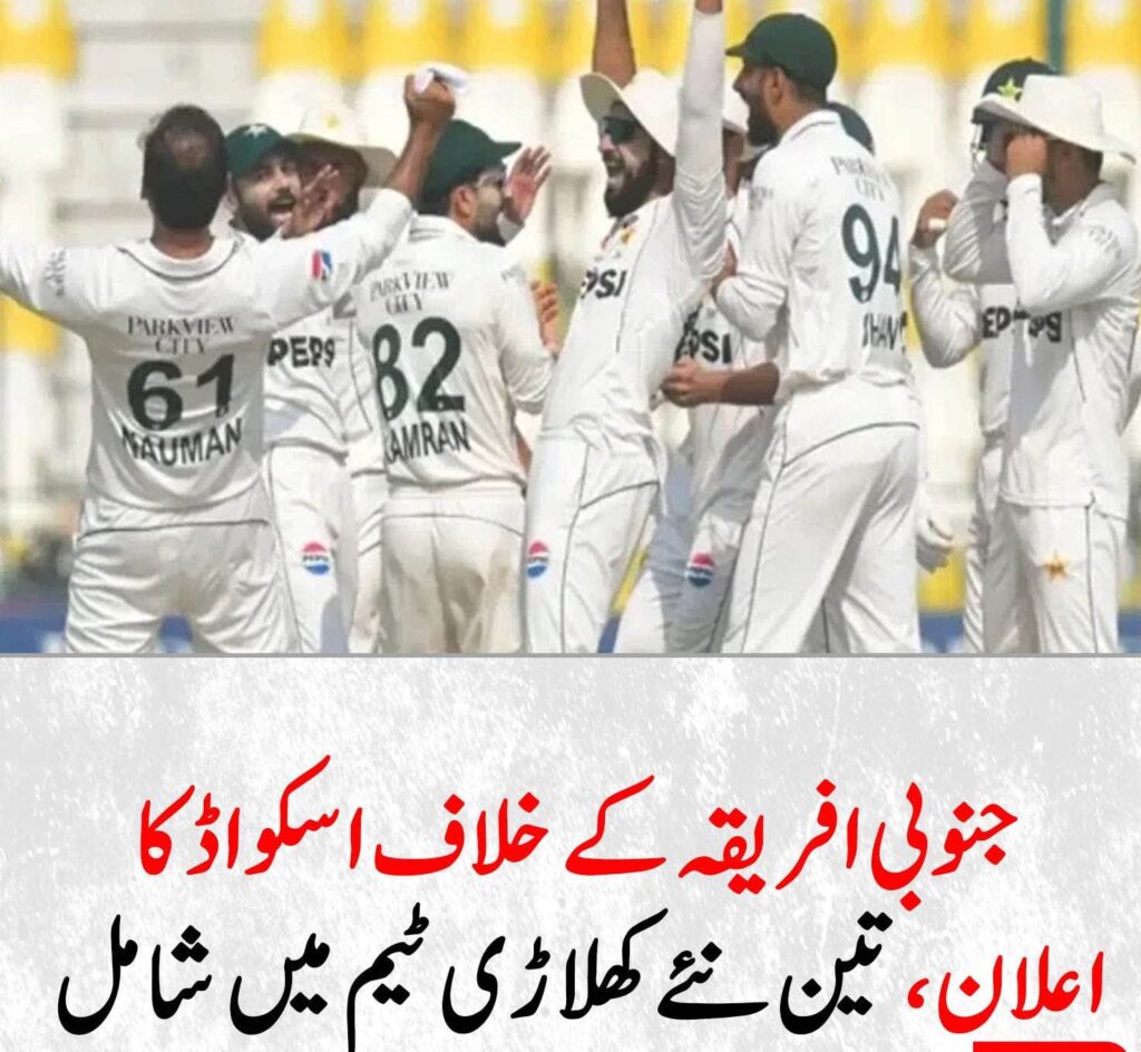 شان مسعود ٹیم کی قیادت جاری رکھیں گے، تین نئے کھلاڑیوں کو ٹیم میں شامل کیا گیا ہے، نئے کھلاڑیوں میں آصف آفریدی، فیصل اکرم اور روحیل نذیر شامل ہیں۔