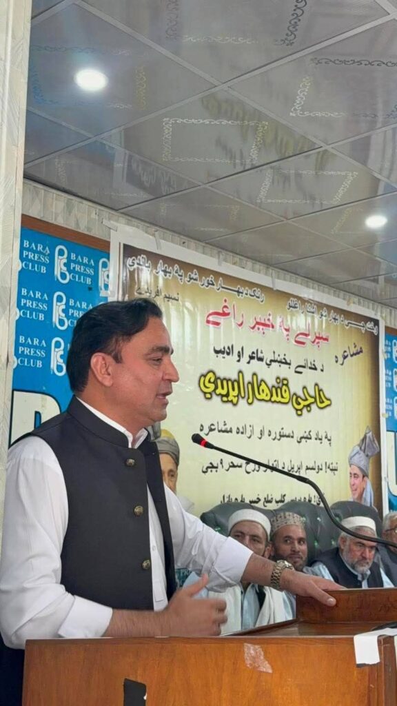 باڑہ سیاسی و سماجی تنظیم معروف کاروان کے زیر اہتمام آج باڑہ پریس کلب میں ایک پروقار مشاعرہ بعنوان “سپرلے پہ خیبر راغلے” منعقد کیا گیا، جس میں ضلع بھر سے شعراء کرام نے بھرپور شرکت کی۔