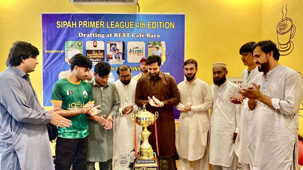 خیبر باڑہ میں سپاہ پرائمر لیگ ( ایس پی ایل) فورتھ ایڈیشن کی ٹرافی رونمائی اور ڈرافٹنگ کی شاندار تقریب بیسٹ کیفے باڑہ بازار میں منعقد ہوئی، جس میں مہمان حصوصی انٹرنیشنل کرکٹ کھلاڑی حصوصی افراد اور السید سٹار مارکیٹنگ پرائیویٹ لمیٹڈ شیر علی آفریدی ، ویلج کونسل سپین قبر اے چیئرمین اختیار بادشاہ آفریدی براڈ بینڈ اوراقی اونر محمد غنی ، ٹیم مالکان، ، اور کھلاڑیوں نے شرکت کی۔ سپاہ پرائمر لیگ فورتھ ایڈیشن سپاہ سپین قبر گروانڈ پر کھیلا جائے گا بہت جلد افتتاحی تقریب کا انعقاد کیا جائے گا